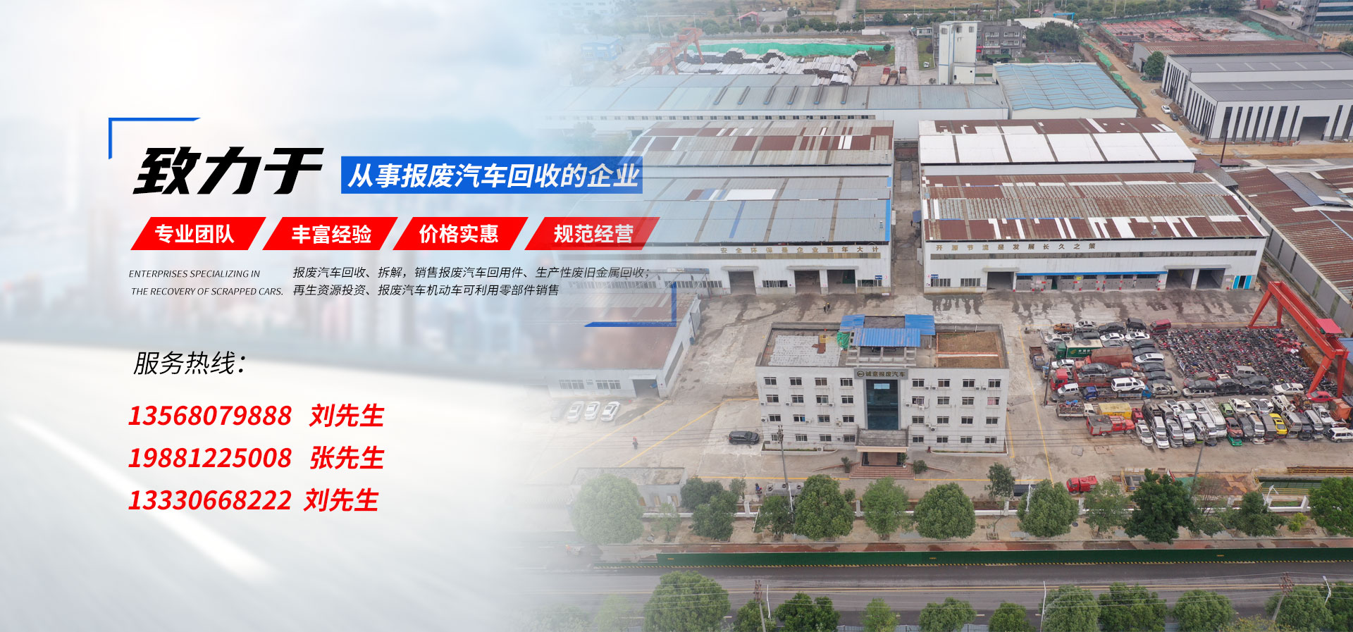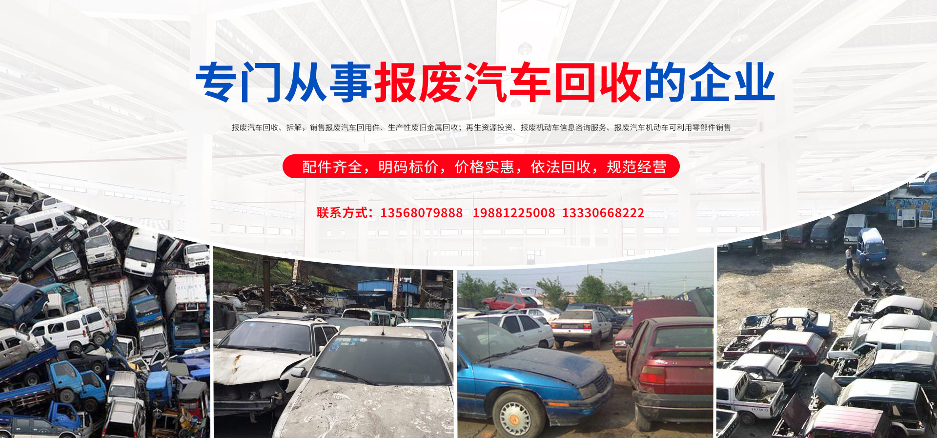 我公司在報廢汽車回收拆解中,認真貫徹執(zhí)行國家法律法規(guī),嚴格執(zhí)行國務院令第307號,積極開展行業(yè)自律,依法回收,規(guī)范經營,從源頭上控制了報廢汽車整車、拼裝車、“五大總成”等上路和重新流入市場的現象,為緩解我市資源短缺,減輕環(huán)境污染,促進資源循環(huán),維護人民群眾生命財產安全和道路交通安全起到了巨大的作用。